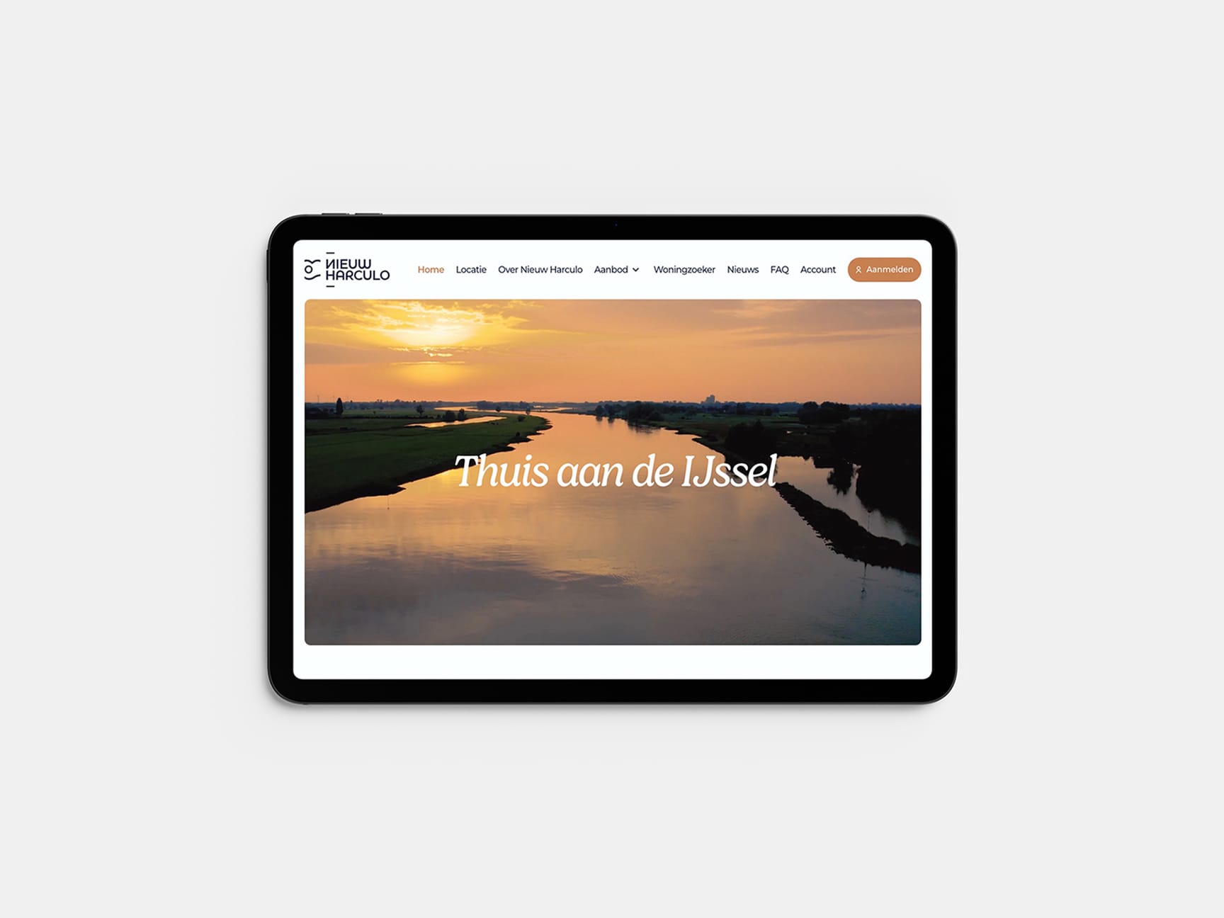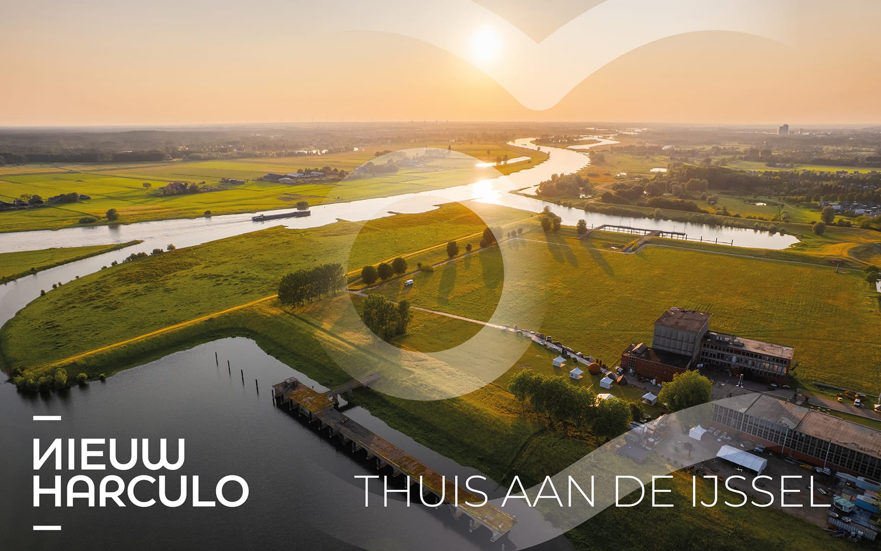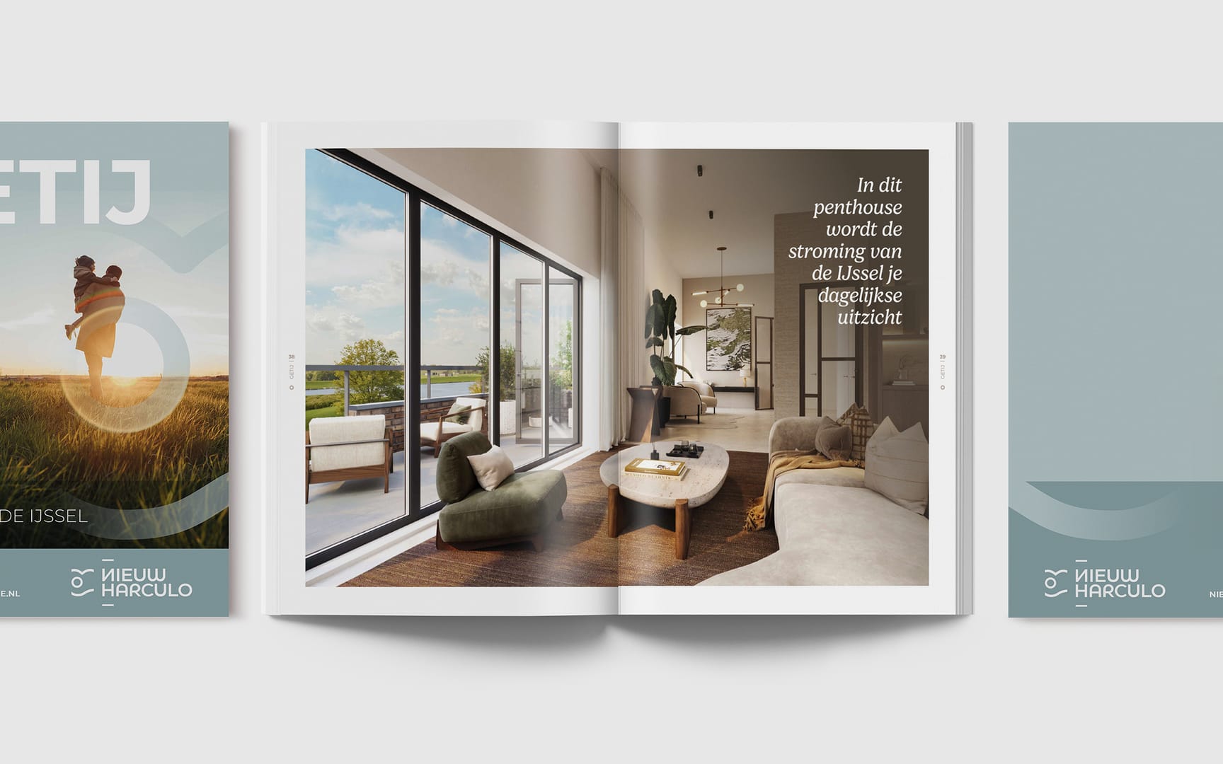 De identiteit van Nieuw Harculo is geïnspireerd op het landschap zelf: weids, rustig en eerlijk. De branding is natuurlijk van kleur en toon, met beelden die het leven aan de rivier laten voelen.