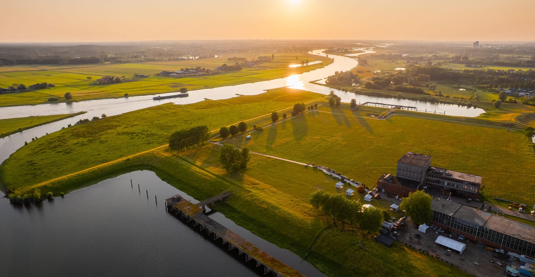 Ook in de fotografie komt dit gevoel terug. Voor de beeldcampagne kozen we bewust voor fotografie tijdens het golden hour, wanneer het warme licht van de ondergaande zon het landschap en de rivier op hun mooist laat zien.